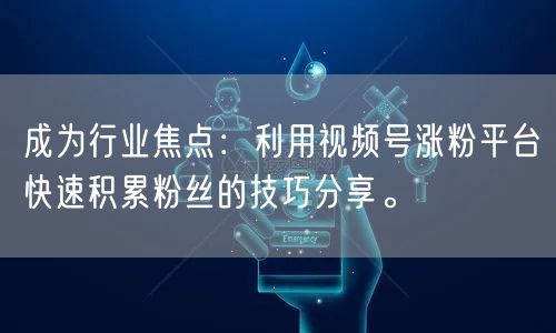 成为行业焦点:利用视频号涨粉平台快速积累粉丝的技巧分享。