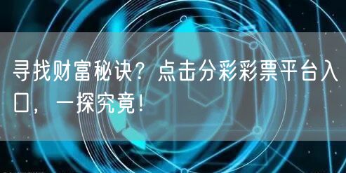 寻找财富秘诀?点击分彩彩票平台入口,一探究竟!